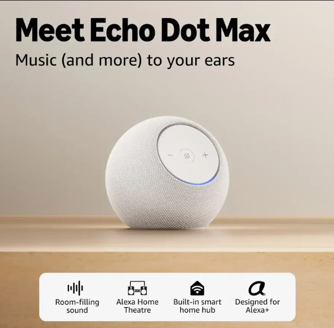 While compact compared to full-sized Echo speakers, the Dot Max significantly upgrades bass response, sound projection, and clarity. As a result, it competes not just within the Dot lineup, but against larger mid-range smart speakers from Google and Apple.