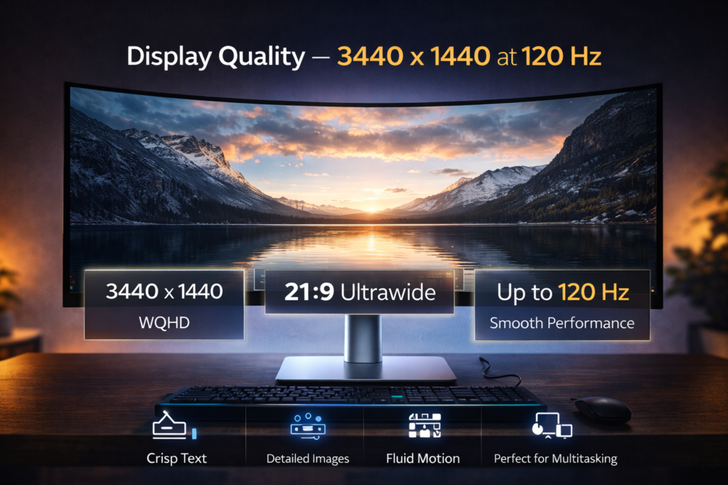 At 3440 x 1440 resolution, the pixel density remains sharp without being overly demanding on GPUs.