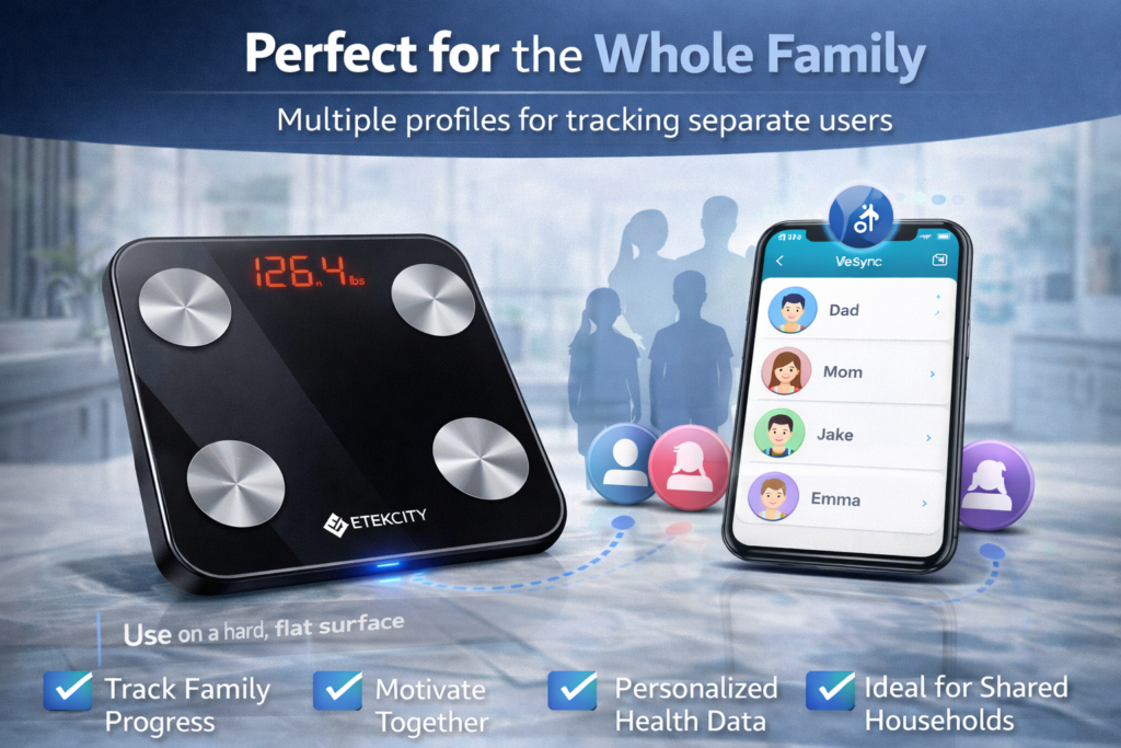 The scale supports multiple user profiles, making it easy for everyone in your household to track their personal health data. From fitness enthusiasts to beginners, it’s a simple and effective way for the entire family to stay motivated.